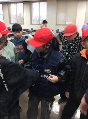 普段は中々見ることができない警察署の中や警察官の方々の持ち物を見学させていただき、