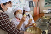 3年生が総合的な学習の時間で育ててきたりんごを全校児童に配布しました。