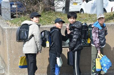 天気に恵まれ、晴れやかな青空のもと卒業式が開催されました。教室では担任との時間を大切にする子供たちの姿が。