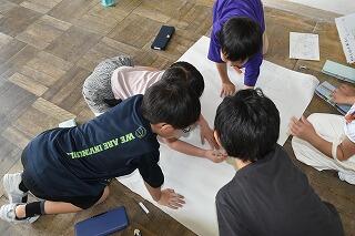 2年生は生活科で大富地区の地図を作っています。登下校の途中にはどんな建物や植物があるのか思い出します。地区ごとに協力しながら地図を作ることができました。