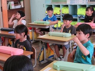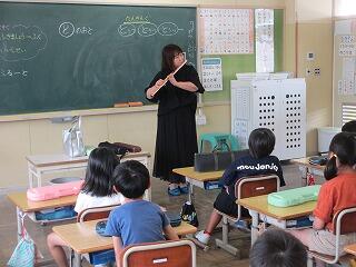 1年生の教室で「鍵盤ハーモニカ講習会」が行われました。