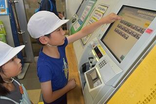 次にさくらんぼ東根駅に向かい自分で切符を買います。初めて電車にのる子もいたようです。