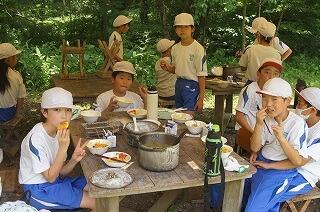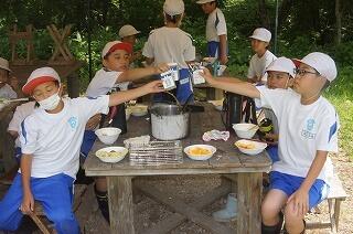 5年生は宿泊体験学習に行ってきました。メインとなる活動の1つの野外炊飯です。火を起こすこと。お米を炊くこと。調理すること。みんなで役割を分担してカレーライスを作ることができました。みんなで協力して作ったカレーの味は格別ですね。
