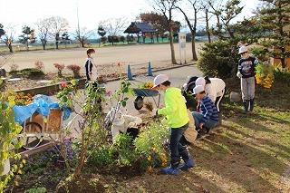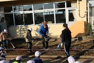 4年生は緑の少年団の活動で花壇の手入れをしました。今日は冬を越せない花を取り除き、花壇を耕す作業です。みんなで協力してきれいにすることができました。