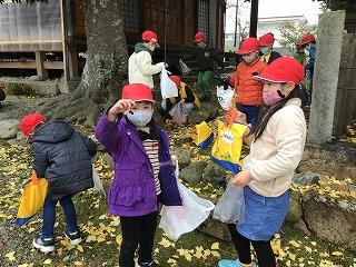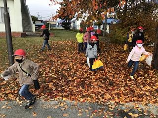 近くの浅間神社や研修センターに行き、松ぼっくりやどんぐりを拾いました。赤や黄色に色づいた落ち葉を見て、秋を感じた子どもたちでした。