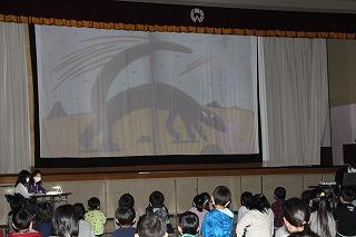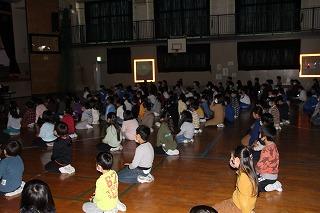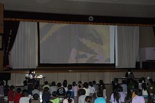今日の集会では、学習指導部の職員が「おまえうまそうだな」という絵本の読み聞かせを行いました。スクリーンに大きく映し出された絵と、役になり切った読み聞かせに大喜びの子どもたちでした。