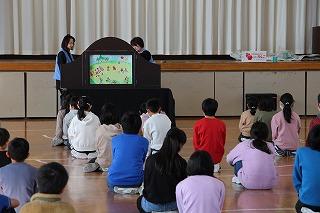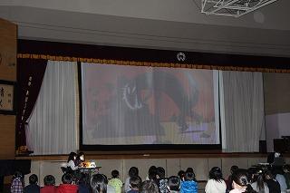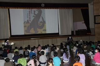 紙芝居や巻物を使って語っていただき、子どもたちはたっぷりとお話の世界に浸ることができました。ますます読書に親しむきっかけになったと思います。