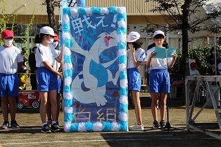 子どもたちは赤組と白組に分かれて、最後の応援練習をしました。両軍ともに仕上がり具合はバッチリです。応援団以外の係活動も、高学年を中心に一人一役でがんばりました。