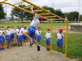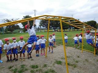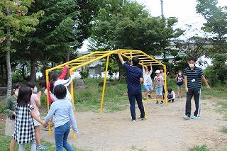 校庭に雲梯が設置されました。創立130周年を記念し、以心会の皆様のご協力で設置されたものです。