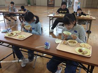 例年はにぎやかな会食になりますが、今年はコロナの感染を防ぐために子ども同士が向かい合うのを避け、静かに料理を味わいました。