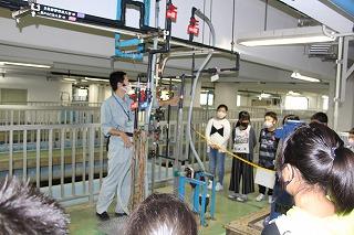 4年生は、社会科の見学で西川浄水場に見学に行きました。川の水がどのような過程を経て、水道水として利用できるようになるのかを見学します。