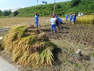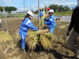 刈るのもかけるのも初めての子ほとんどでしたが、百姓寺子屋の皆さんに教えていただきながら、