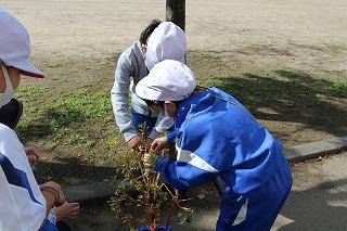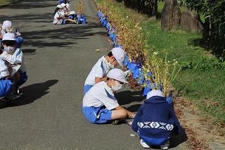 春から観察を続けてきましたが、今日は最後のスケッチをし、種をとりました。小さな種からこんなにも大きく成長し、また種ができることに、子どもたちは改めて驚いていました。