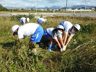4年生は、今週枝豆の収穫をしました。実がしっかり入っているおいしそうな枝豆です。
