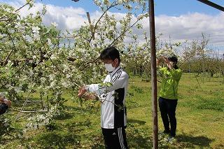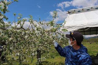 今日は百姓寺子屋さんとりんごの花摘みをしました。