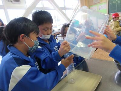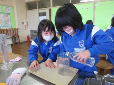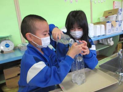 1年生 算数 どちらがおおいかな 投稿: 大富小学校-1 (17:59) 算数の時間に家庭科室で水のかさの学習を行いました。 様々な容器に水を移し替えると、見え方が変わっても水の量は変わらないことを学びました。