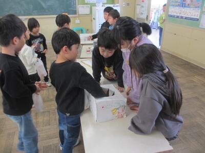生活科 なかよし会をしたよ 投稿: 大富小学校-1 (16:33) 生活科の時間におおとみ保育園の子ども達となかよし会をしました。 学習発表会で行った発表をしたり、1組2組の教室で、コーナーごとに分かれていろんな遊びをしたりしました。 みんなが笑顔で、なかよしになれた良い会になりました。